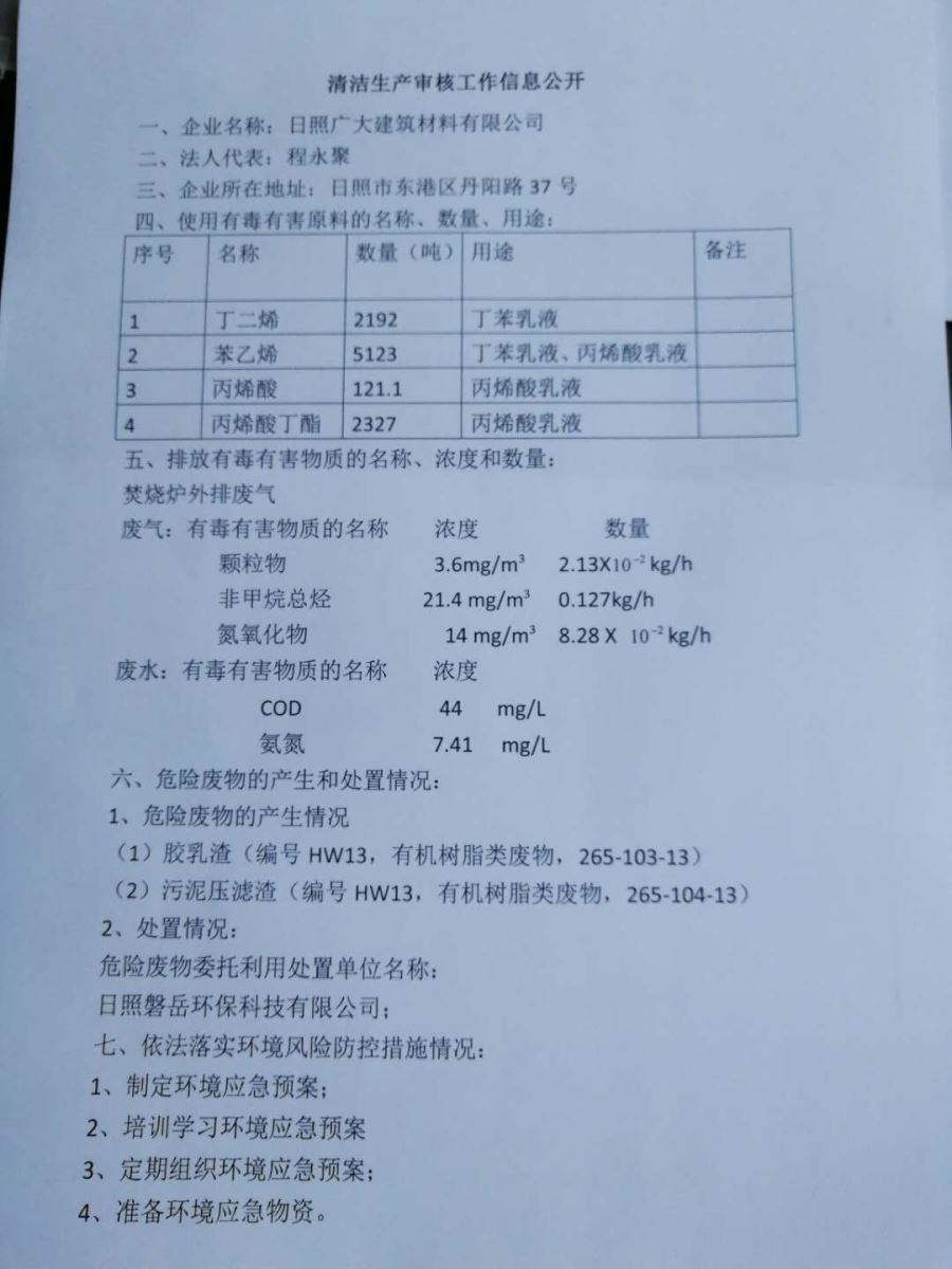 日照廣大建筑材料有限公司,位于風景秀麗的海濱城市山東日照,成立于1988年,是專業(yè)生產(chǎn)高分子化工產(chǎn)品,集科研開發(fā)、生產(chǎn)經(jīng)營為一體的化工企業(yè),主要產(chǎn)品為丙烯酸脂類乳液和丁苯膠乳。是國內(nèi)目前江北同行業(yè)產(chǎn)銷量最大企業(yè)之一。