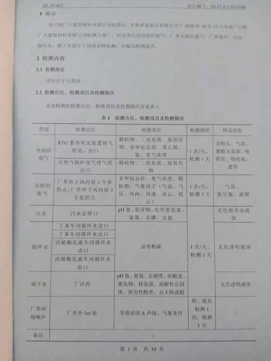 日照廣大建筑材料有限公司第四季度檢測報告