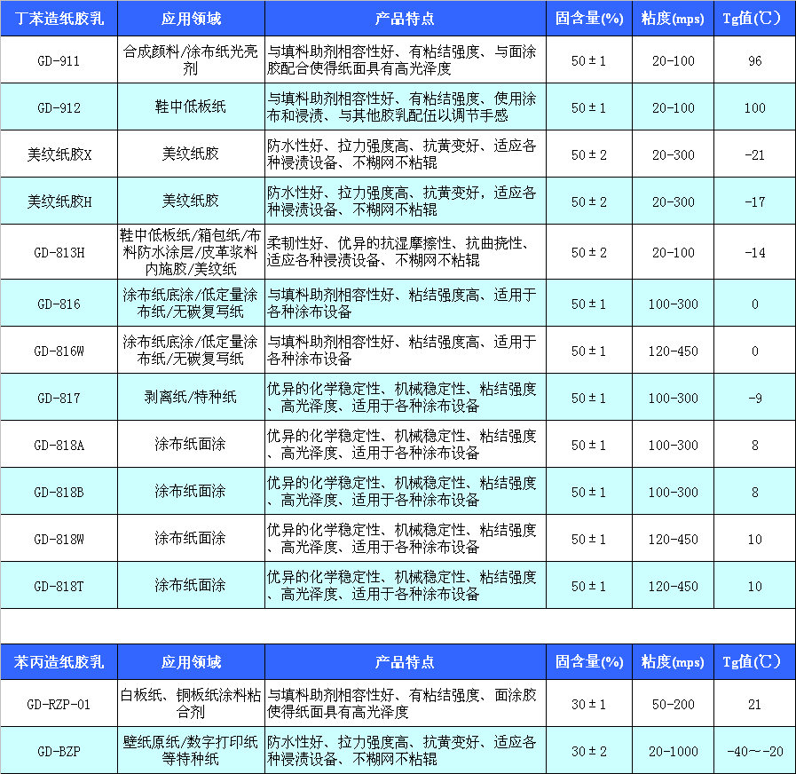 主要產(chǎn)品為丙烯酸脂類乳液和丁苯膠乳。公司擁有現(xiàn)代化的自動生產(chǎn)線和先進(jìn)的檢測儀器,依靠嚴(yán)格的管理、精湛的生產(chǎn)工藝,先后開發(fā)生產(chǎn)出苯丙、純丙、硅丙、醋丙、羧基丁苯、助劑等六大系列三十多個品種的建筑、紙品、地毯、紡織、防水用乳液及助劑,年生產(chǎn)能力達(dá)10萬余噸。
